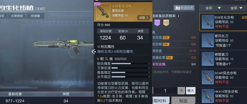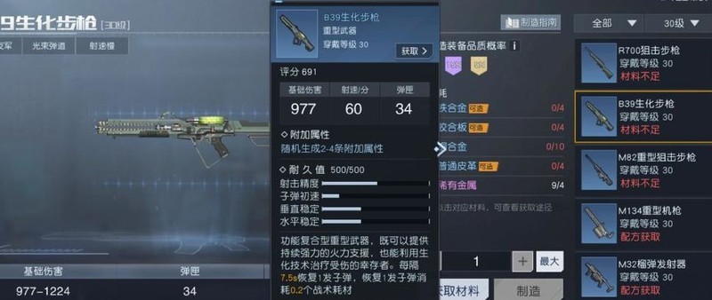 蓝色品质武器可附加2至4条属性,在非极限追求的情况下,属性差异影响较小,核心仍在于重武器原有的使用体验。生化步枪拥有34发弹匣容量,每7.5秒自动恢复1发子弹,且每次仅消耗0.2个战术耗材,相比其他重武器更耐消耗,无需担忧耗材快速耗尽的问题,持续作战能力较强。