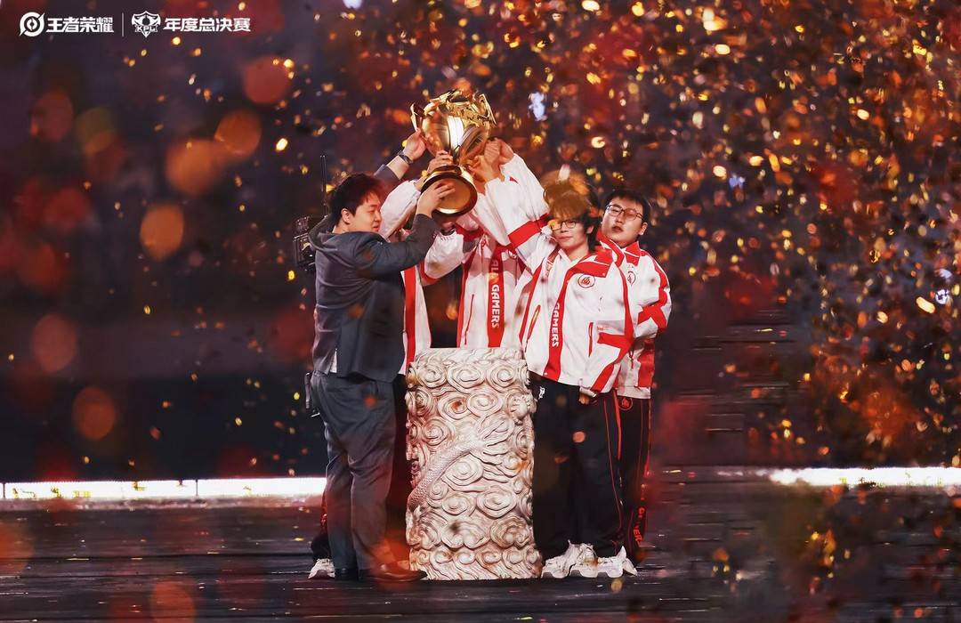 随着比赛结束,成都AG超玩会的选手捧起圣龙杯的同时,金色的雨徐徐洒满鸟巢全场。就像每一位曾经在这里洒下热泪与热爱的竞技前辈们一样,鸟巢与人们共同见证攀登顶峰路上所有人的热血与荣耀。