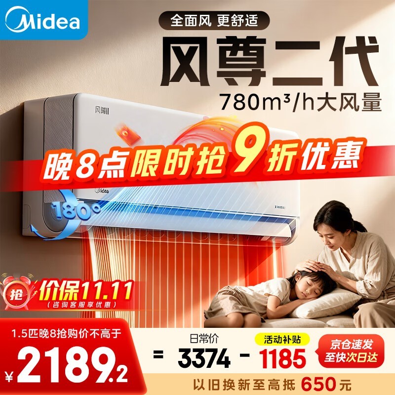 美的1匹风尊二代空调,到手仅2189元