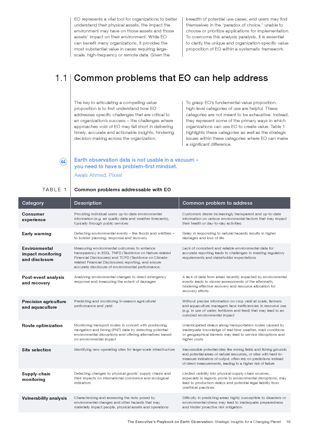 通过地球观测(EO)测量建筑环境和自然现象的集体能力在精度和规模上继续提高。有成千上万个可能的应用程序,这些数据的潜在价值是巨大的,而且还在不断增长;绝大多数价值仍未实现,主要是因为采用率不断下降。