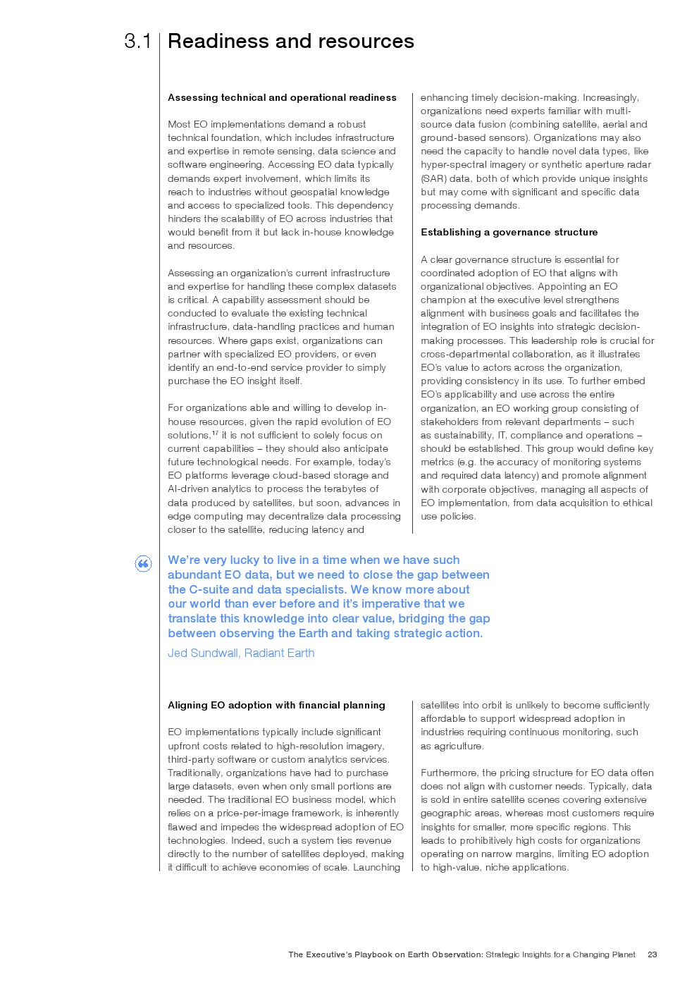 制定执行策略:有效的EO集成需要细微差别,特别是在评估技术准备和专业知识、建立治理以及导航复杂的EO生态系统时。
