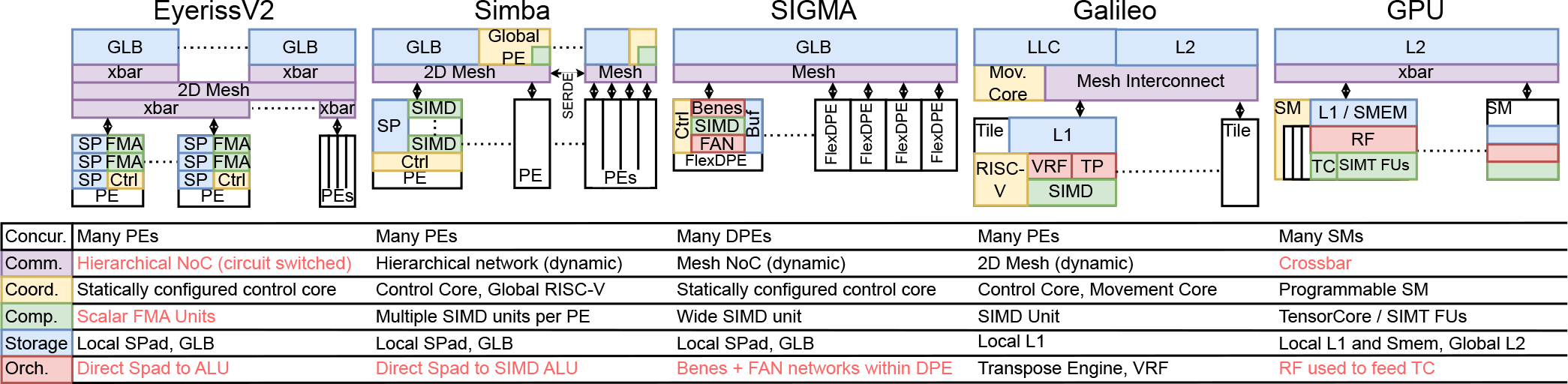 体系结构的角色是什么?我们希望理解是否可以通过体系结构变化,超越在 7nm 与 5nm 上实现的最先进(SOTA)芯片实现。为此,我们定义并评估一个可实施的 TDCC(Tiled Decoupled Control & Compute) 架构——Galileo,以实证回答第二个问题。