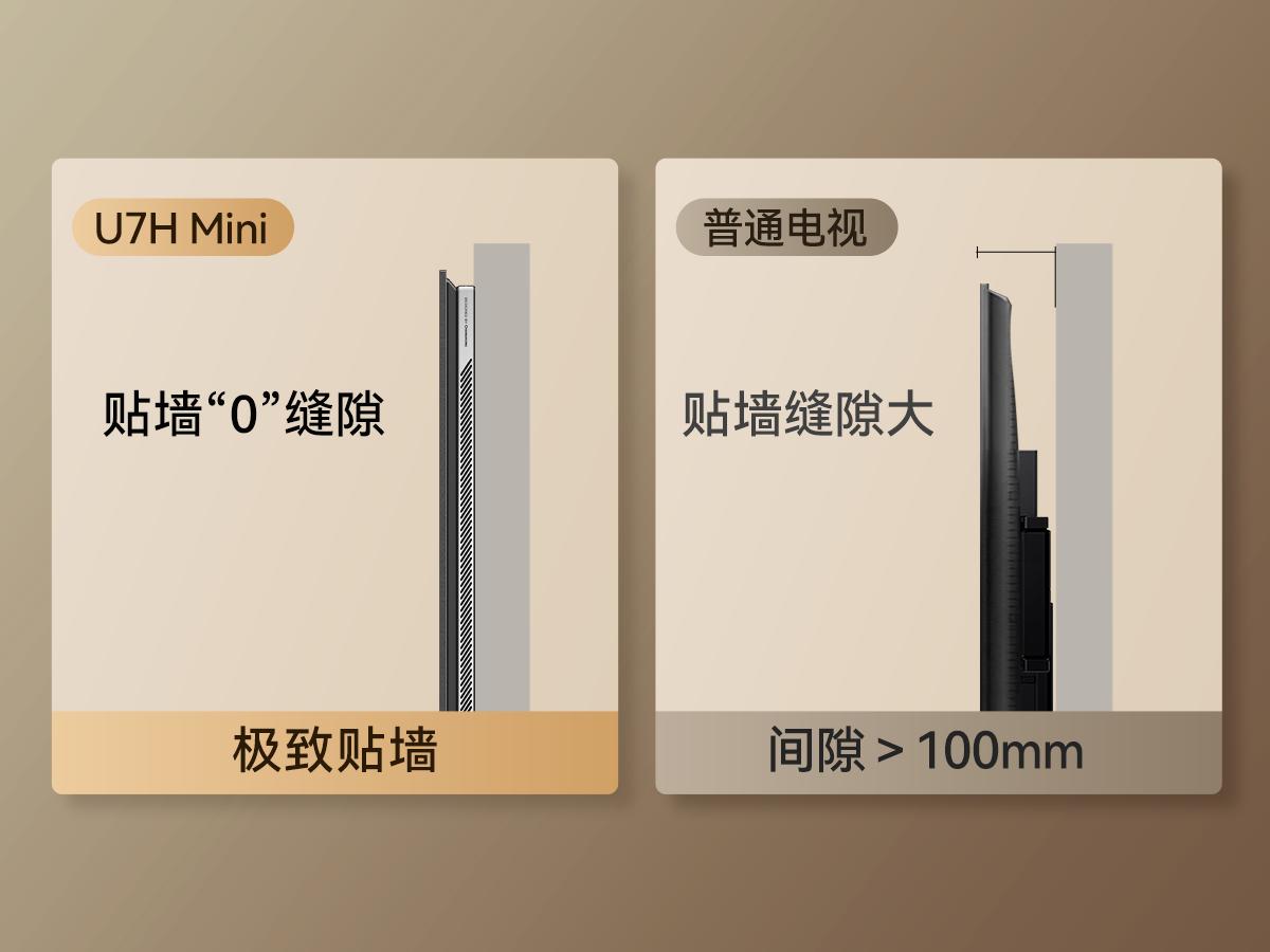 虽然“超大屏”和“0贴墙”成为了新的趋势,但是当消费者期望它能像一幅真正的壁画那样完美融入家居时,传统的结构与散热设计已无法满足要求。传统结构的电视哪怕做到“贴墙”,其热量堆积而产生的“热岛效应”会对电视和墙体造成伤害。抑或是要求电视和墙面留有足够的散热空间,这样的空间限制让“0贴墙”的视觉美学难以实现。由此,“贴墙”与“散热” 成为了行业公认的、难以兼得的“悖论”。