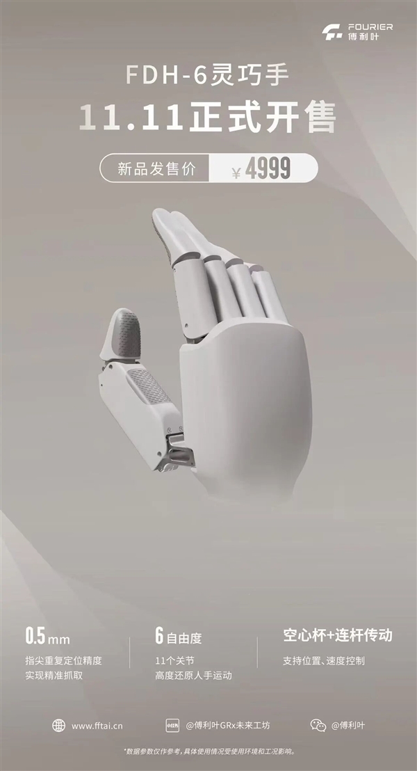 快科技11月10日消息,上海傅利叶宣布,旗下FDH-6“灵巧手”将于明天正式开售,定价4999元。