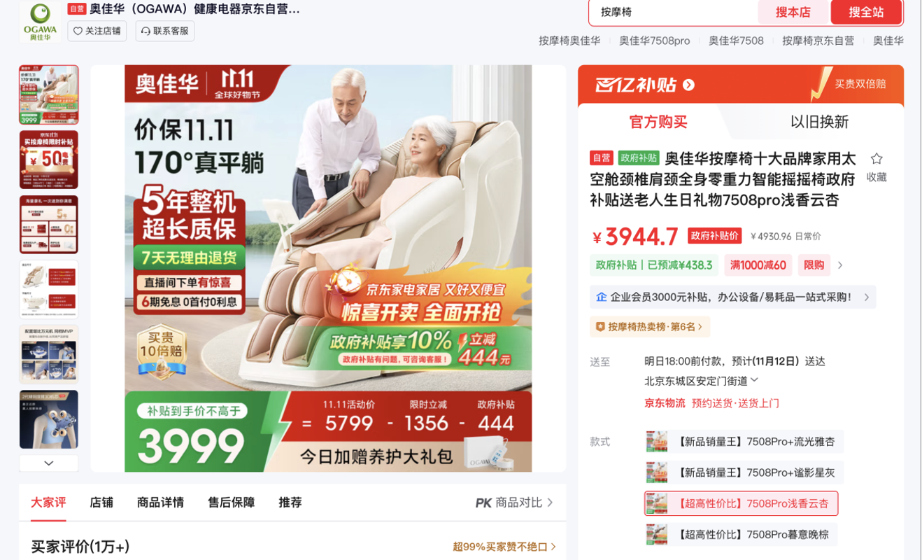 奥佳华7508pro按摩椅,为您开启居家养生新体验。这款按摩椅首创灵动SL导轨,随身而动,任何角度始终贴合,更有170°悬浮平躺,强拉伸超贴合。采用精钢摆臂3D机芯,如同人手般灵活,22套专家主推程序媲美专业按摩技师,在熟悉的家中也能享受星级SPA的舒适感受。京东11.11期间,咨询客服领取200元优惠券,补贴后到手价仅需3744.7元,下单享5年整机超长质保,加赠养护大礼包,还可享6期免息分期,让品质生活触手可及。