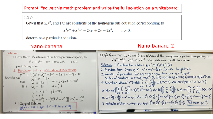 结合世界知识和文本渲染,nano banana 2 还能在黑板上为我们解题,这不比看着聊天框里面长长的数学推理舒服多了。
