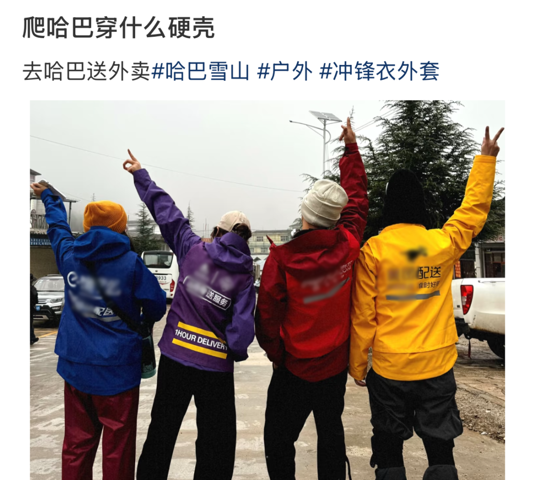 最重要的是,你以为外卖服外观土味,实则在户外安全系数拉满,教练和向导一眼就能看见你。“闪购的橙色骑士服,原本是打工人熟知的阿里橙;如今进了户外圈,这还是救生衣常用的配色,国际安全橙。”