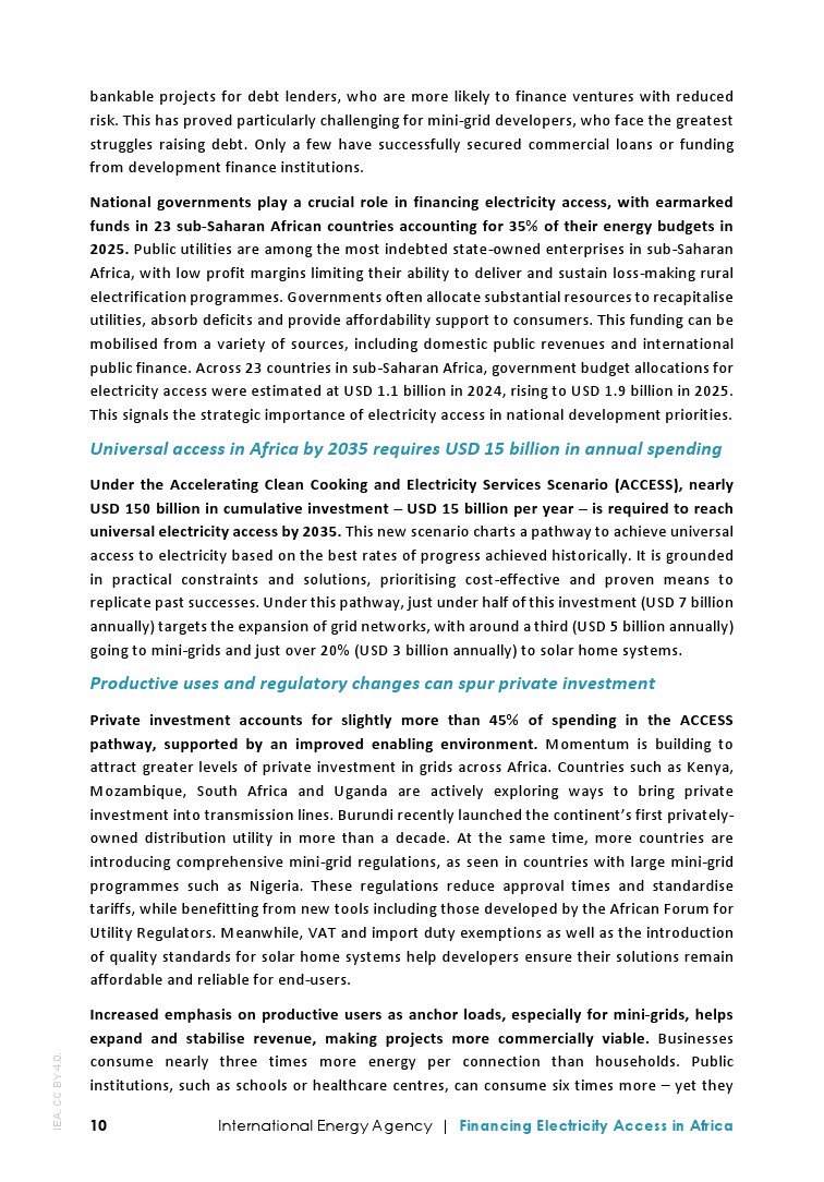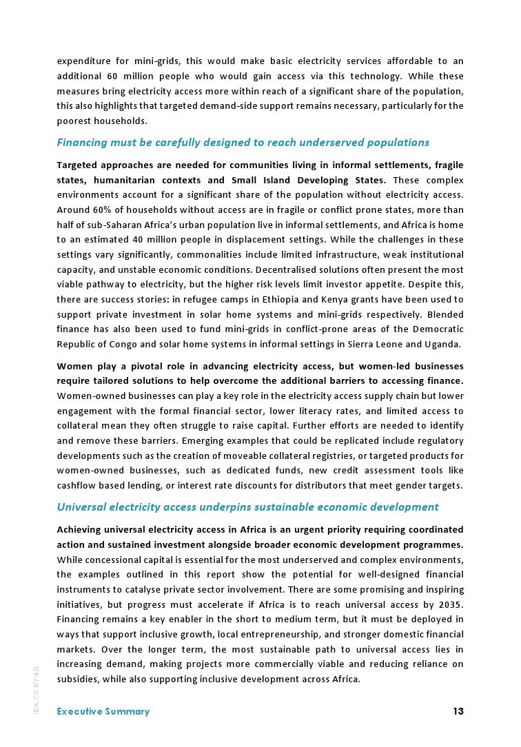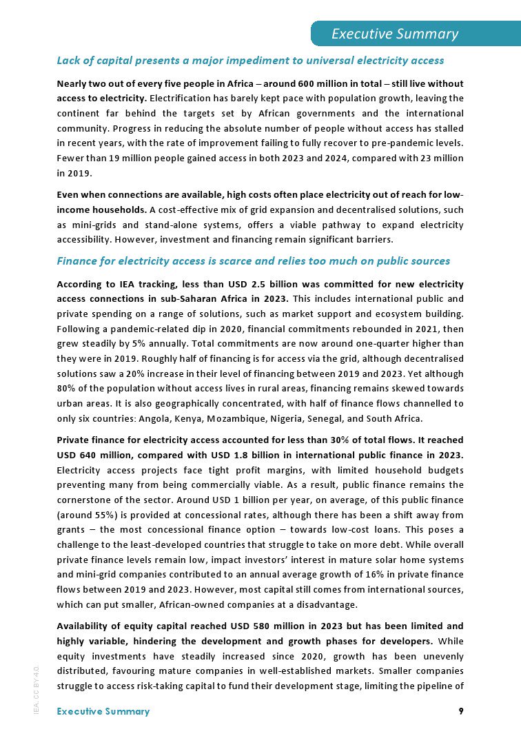 IEA发布了新报告“为非洲电力供应融资”。资金不足是普及电力供应的一大障碍。非洲近2/5的人口——总计约6亿人——仍然无电可用。