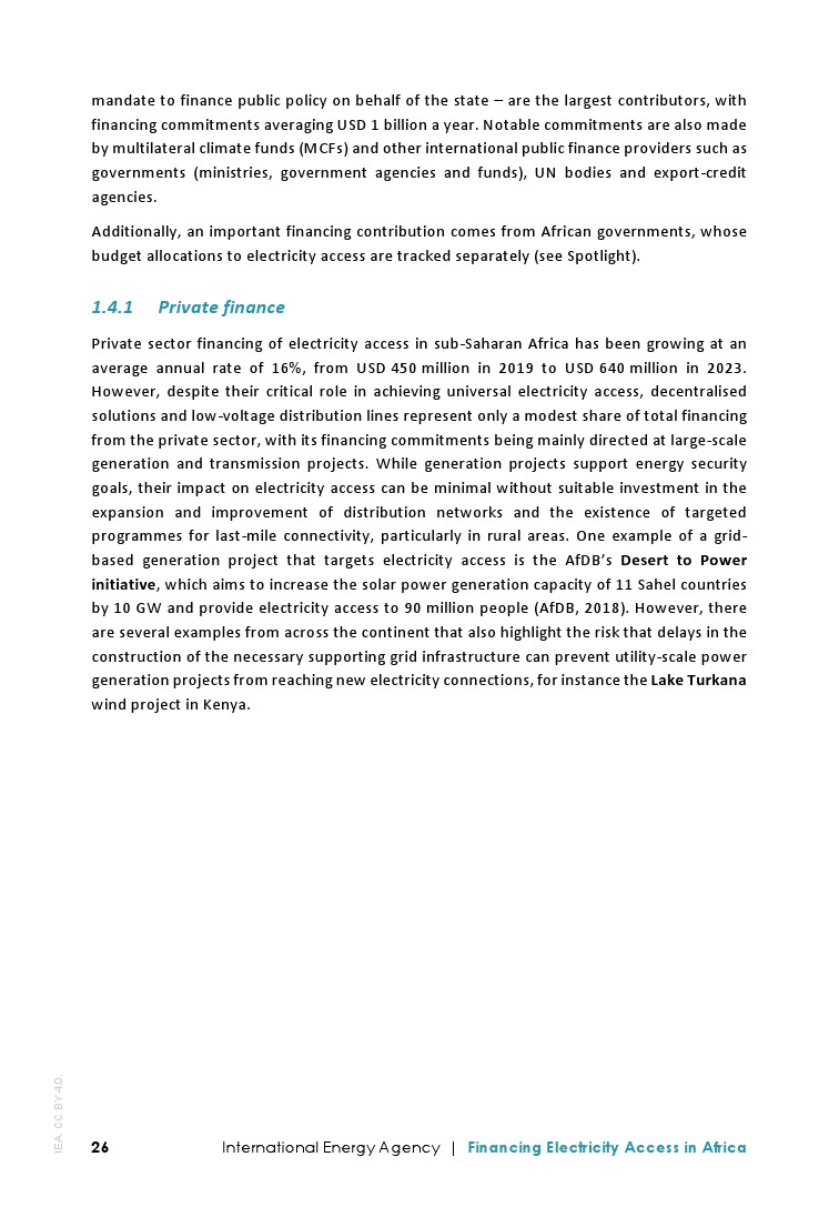 电力供应的私人资金占总资金流量的比例不到30%。2023年私人资金达到6.4亿美元,而国际公共资金为18亿美元。