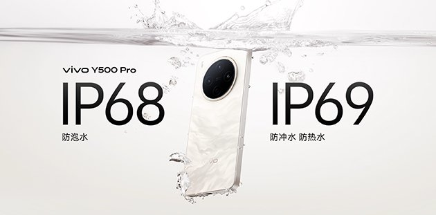 耐用和续航始终是vivo Y系列的优势。耐用方面,vivo Y500 Pro在行业内首获国标可靠性认证,高温、极寒、高湿极端环境超耐用。同时,vivo Y500 Pro还支持IP68+IP69满级防水能力。