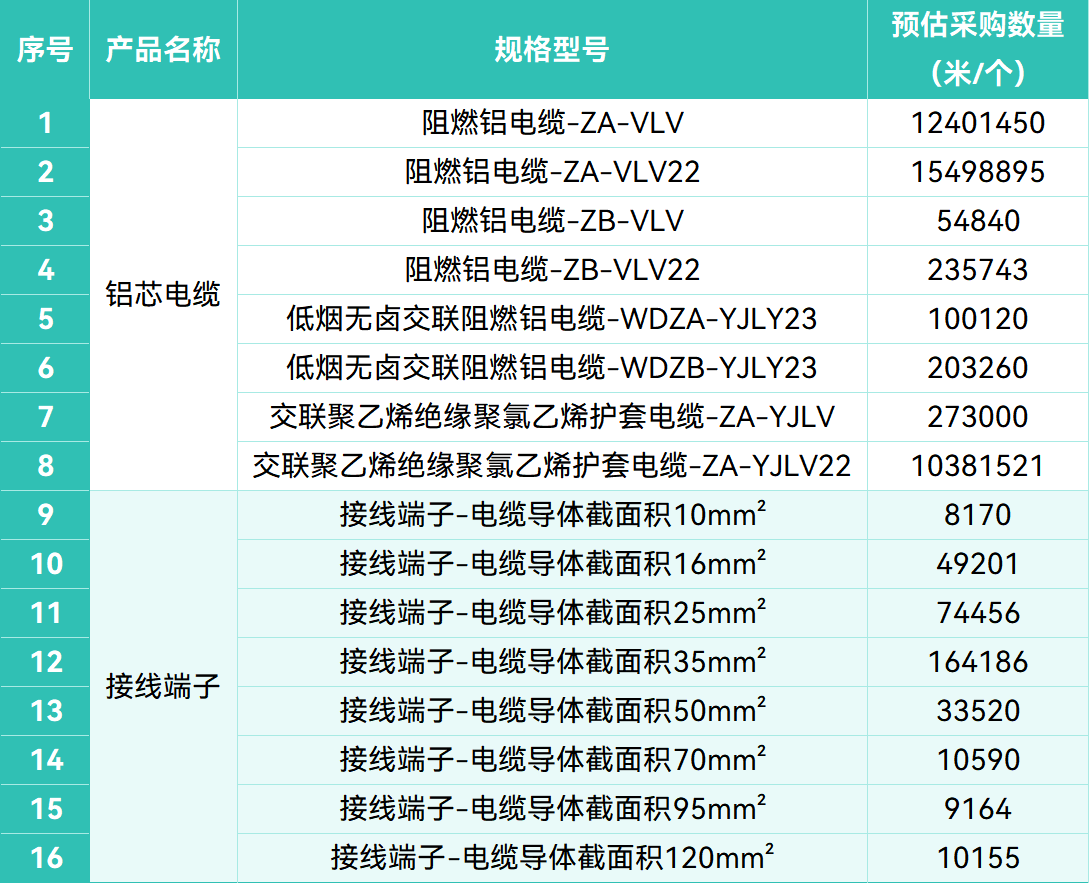该项目合同有效期为1年,预估采购总量高达3915万米铝芯电缆,并同步采购配套接线端子近36万个,资金来源为招标人自筹,目前已落实到位。