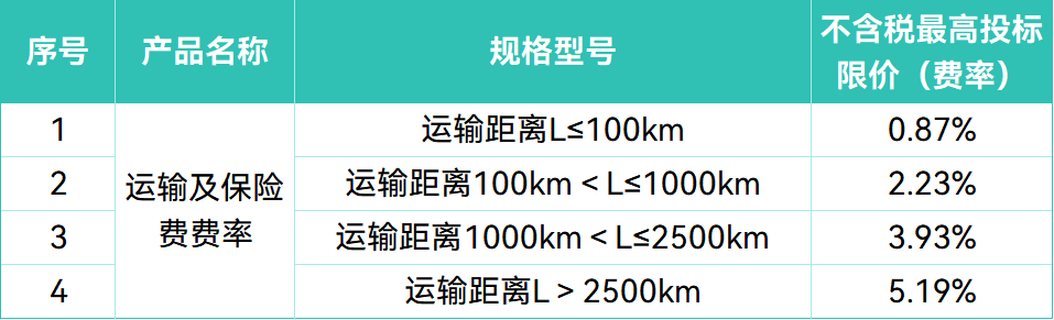 此外,运输及保险费率则按运输距离阶梯设定,最高不超过5.19%。