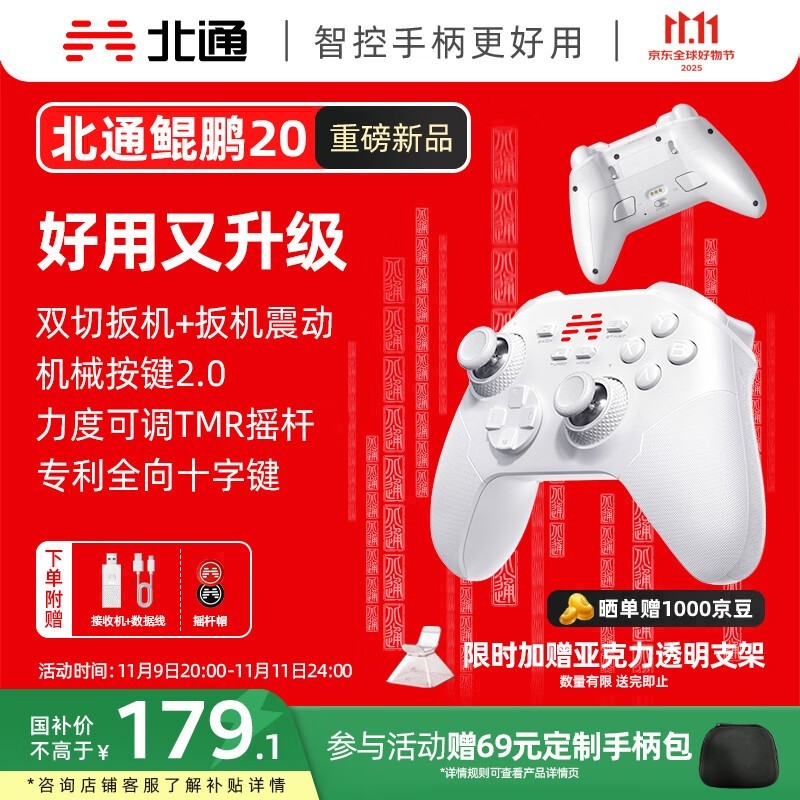 北通鲲鹏20无线手柄直降,满减后199元畅玩游戏!