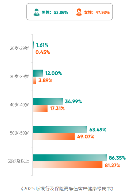 《2025版银行及保险高净值客户健康绿皮书》所采用的统计数据来源于2024年9月1日至2025年8月31日在爱康集团旗下体检中心参加体检的银行及保险高净值客户,共覆盖约33.07万人(35.18万人次)。