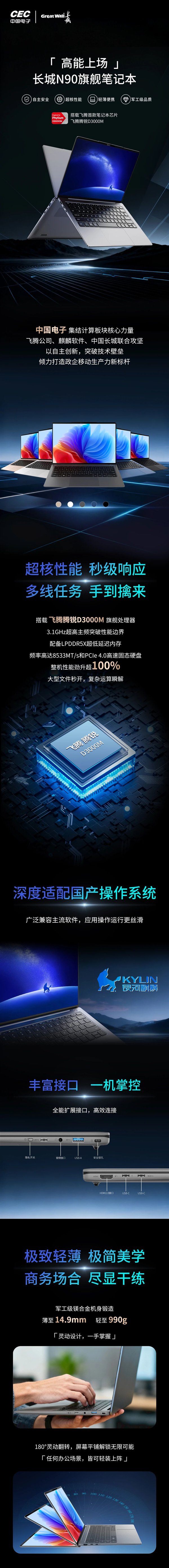 快科技11月11日消息,中国电子信息产业集团旗下的长城科技,发布了旗舰级商务本“N90”,搭载国产的飞腾腾锐D3000M处理器,从设计到配置都颇为精良。