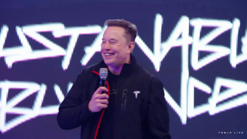 一位提问者对台上的马斯克道喜,后者哈哈大笑,观众席爆发掌声。