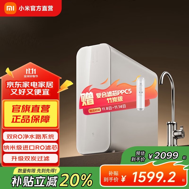 米家1200G Pro净水器直降,赠滤芯仅1599