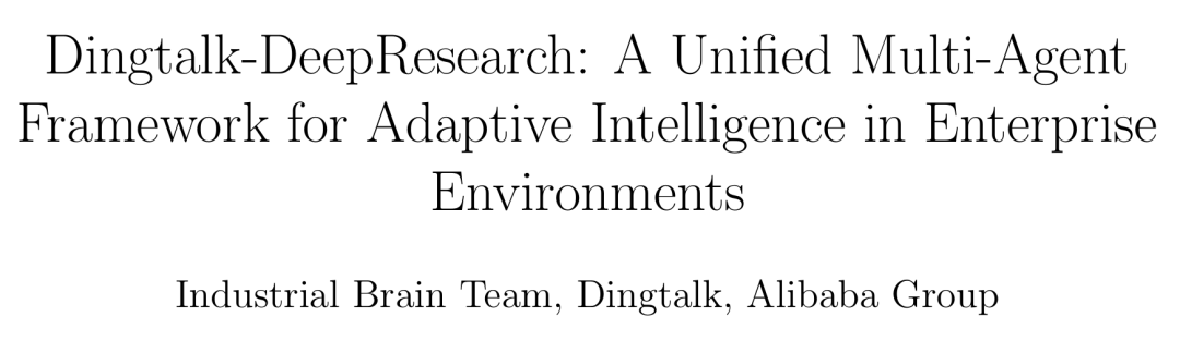 论文标题:Dingtalk DeepResearch: A Unified Multi Agent Framework for Adaptive Intelligence in Enterprise Environments