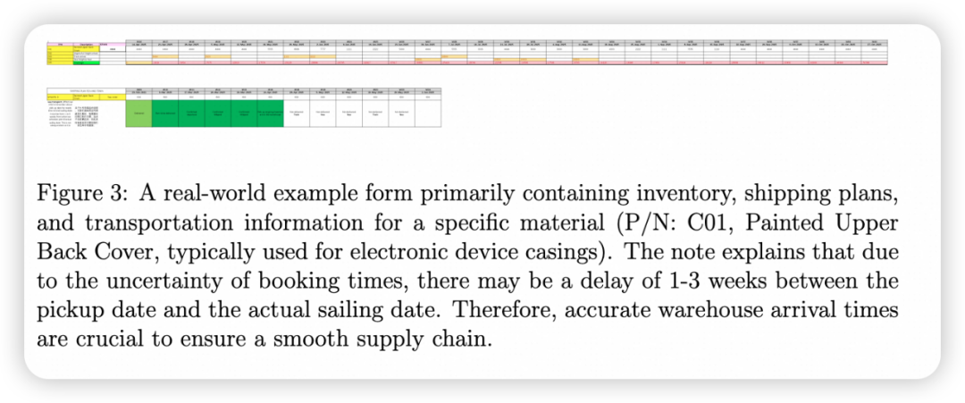 在案例 A 中,系统处理了一个包含库存、多周预测和多式联运计划的复杂表格。Dingtalk-DeepResearch 能够准确解析多节生产记录、发货计划和物流说明,实现精确的信息检索与合成。该方法可扩展到多个大型文件(如案例中 8 个相似的 1200 行文件),显示了其鲁棒性和实用性。
