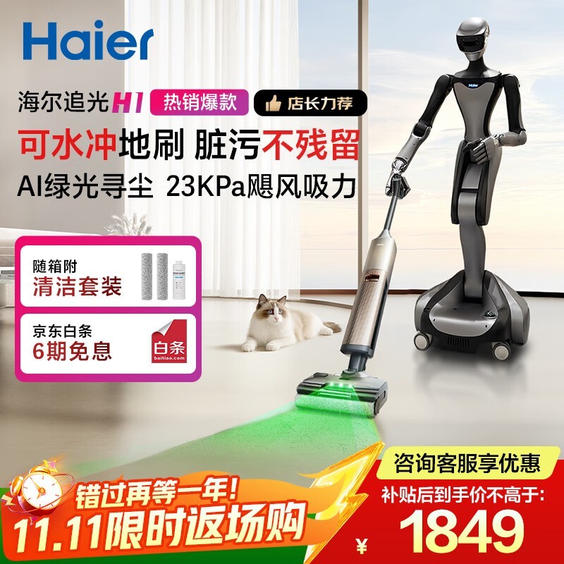 海尔追光 H1 洗地机,到手低至 1748 元