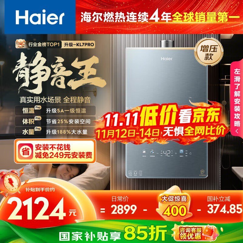 海尔16L KL7pro燃气热水器低至1497元
