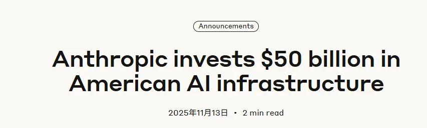 11月13日讯 美国人工智能(AI)初创企业Anthropic宣布,公司计划投资500亿美元用于建设美国人工智能基础设施,首批项目为在得州和纽约州建立定制化数据中心。