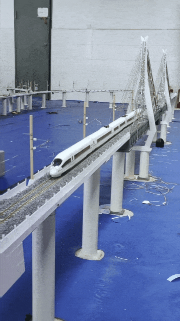 据了解,这个高铁模型包含车站、接触网、大桥、机车、联锁控制台等设施。
