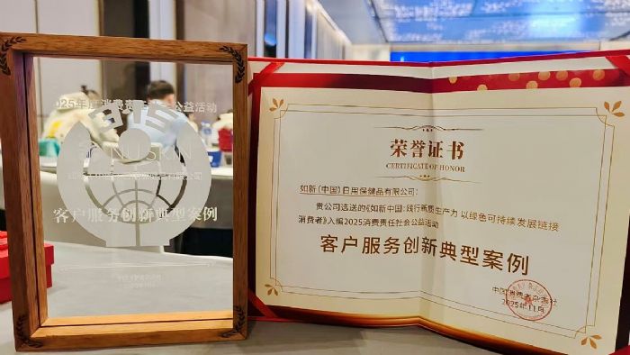 此次荣获“客户服务创新典型案例”与“客户服务典型人物”双项荣誉,是对如新中国长期以来坚持产品创新、品质保障与绿色发展的充分肯定。未来,如新将继续深化新质生产力实践,以科技驱动产品升级,以服务赢得消费者信任,携手各方共同构建放心、舒心、安心的消费环境,为“健康中国”建设与高质量消费生态贡献企业力量。