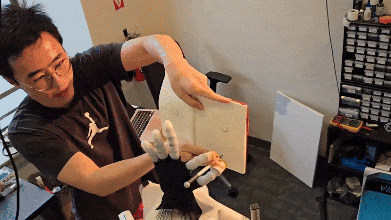 他经常举莱特兄弟的例子。他们造飞机时,用的不过是自行车店里的零件和链轮,但因为抓住了空气动力学这个真正的核心原理,飞机才能飞起来。张家豪认为,过去几十年里,机器人领域可能也忽略了一条新的原理。Daxo 第一版灵巧手里有上百个电机,用的不是某种革命性的理想材料,而是大多能在 Amazon 上买到的风筝线、烧伤康复袖套等日常物料。他只是把这些重新组织一遍就展现出了惊人的灵巧度。