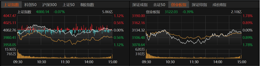 截至收盘,沪指险守4000点,两市3563只个股收跌。盘面上,家电、银行等传统股表现不错,但电力设备、计算机等科技股仍低迷。
