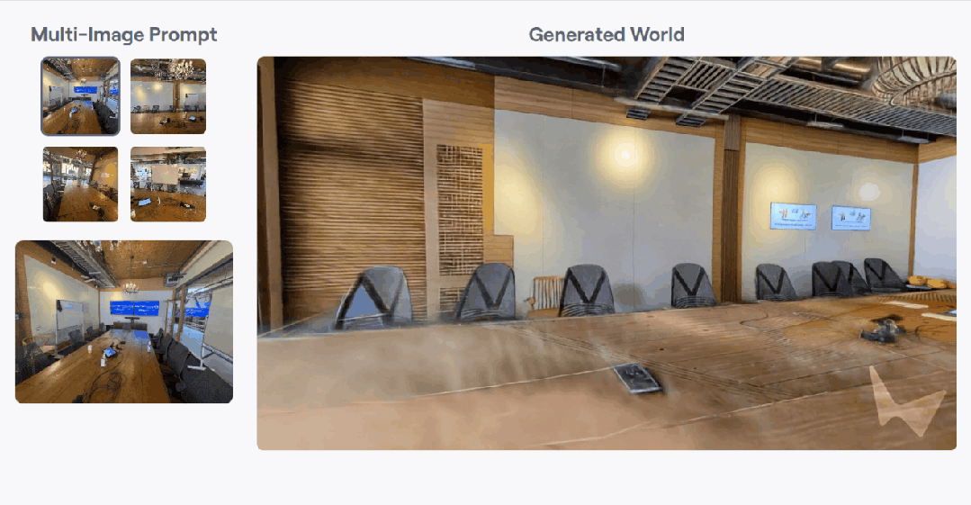 例如,多图提示(multi-image prompts),可为世界不同区域提供不同参考图,将多视角内容拼接为统一的 3D 空间。