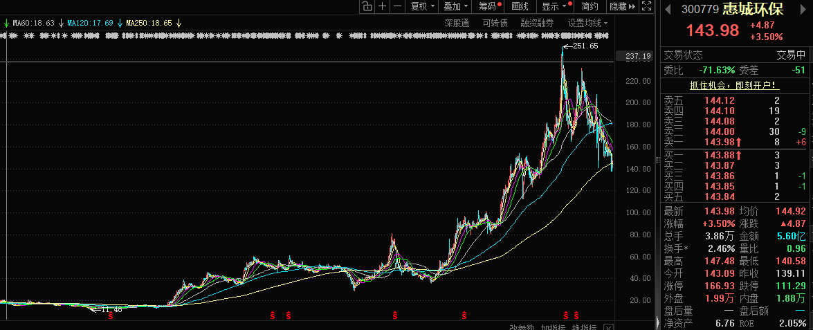 在A股市场形形色色的“妖股”中,惠城环保(300779.SZ)可谓是独一无二的存在。
