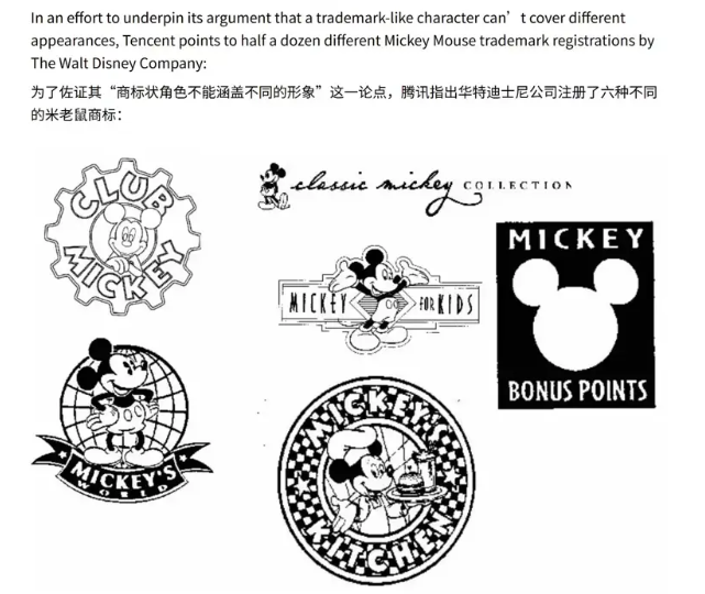 腾讯表示,以“米老鼠”的知名度与识别度,迪士尼尚且在不同时期为不同外观的米老鼠都注册了独立商标,而索尼仅靠单一的角色概念与人物设定,就试图获得商标权的保护,达成实质性的垄断,显然缺乏法律效力。