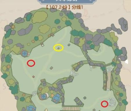 风车郊野有三处刷新点,两处在左上角及风车旁,一处位于右下角。