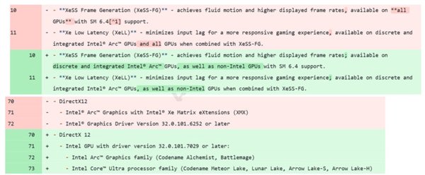另外Intel在更新的开发者指南中,已移除对XMX硬件的强制要求,并表示XeSS帧生成现在应能与所有支持Shader Model 6.4的GPU兼容,包括Intel和非Intel显卡。