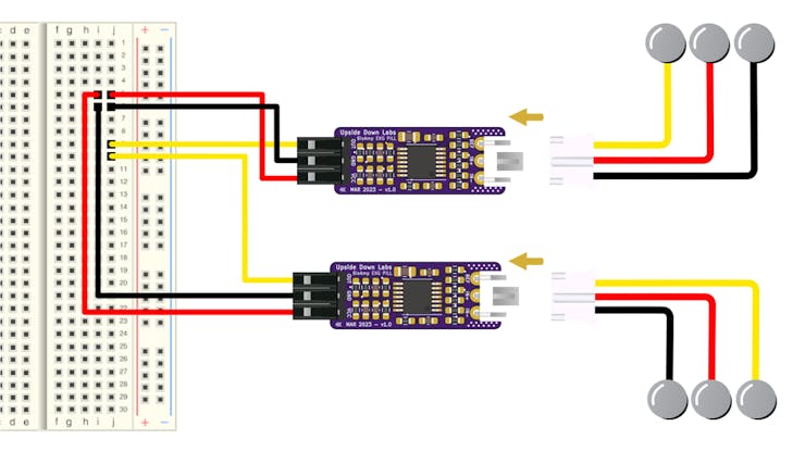每个 EXG Pill 使用 3 根公对母线与面包板连接: