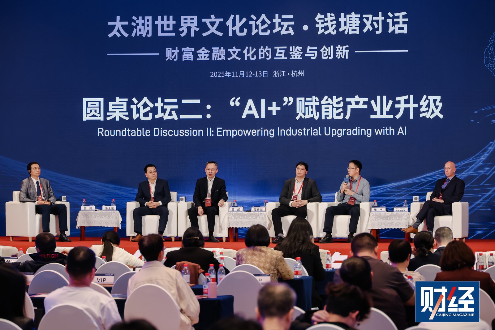 论坛围绕三大核心议题展开:圆桌论坛一聚焦“金融港湾的发展与差异化”,探讨在全球金融格局重构背景下,杭州如何打造具有国际辨识度的金融高地;随后的对话“AI是泡沫还是革命?”直面技术热潮中的理性追问;圆桌论坛二“‘AI+’赋能产业升级”则进一步将讨论落向实体经济,审视技术如何真正嵌入产业肌理、重塑价值链条。三场讨论层层递进,共同勾勒出一条从资本逻辑走向文明共生的思考路径。