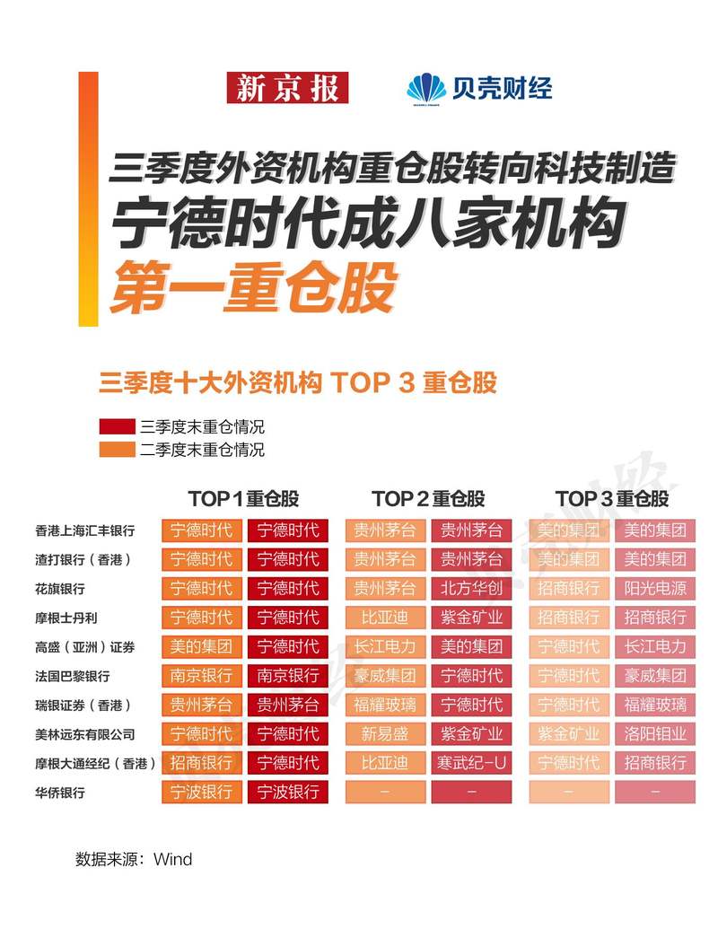 头部外资加仓路径清晰 科技制造取代消费金融