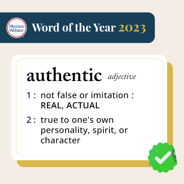 韦氏词典在 2023 年选择的年度词汇,是「authentic」真实的,同时也有「本真」的意思。这个词存在已久,但在充斥 deepfake 和 AI 生成内容的一年里,它的脱颖而出,意义非凡。