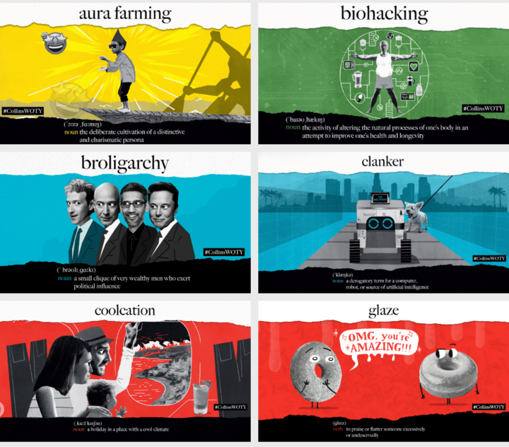 「biohacking」指生物黑客式的自我改造;「broligarchy」调侃科技富豪把持权力的「兄弟寡头政治」等。这些五花八门的新词一起勾勒出 2025 年的图景:从工作到娱乐,AI 正重塑我们的语言和生活方式。