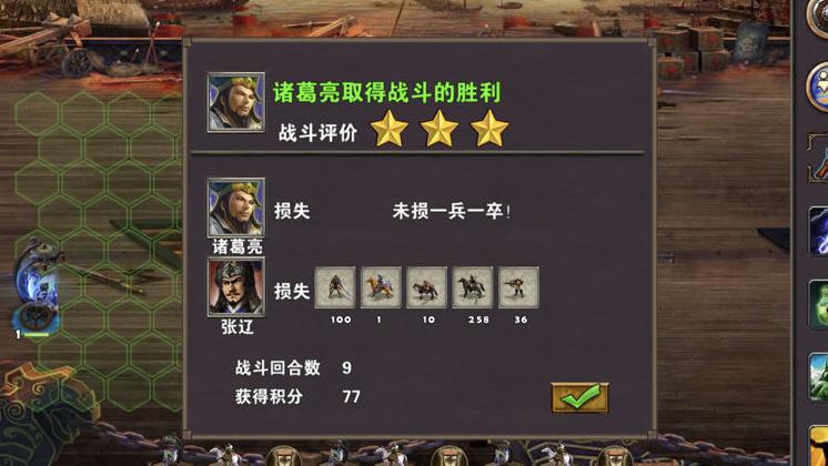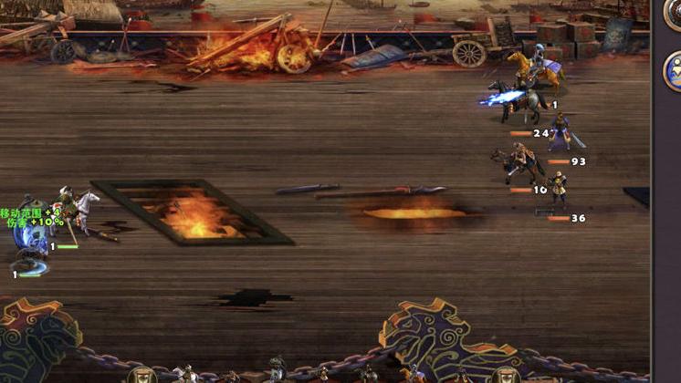 继续向左前行,遭遇张辽,直接交战并将其击败。此时时间大约为两周零一天。与此同时,周瑜所在区域的小怪已完成刷新,应立即指挥周瑜与甘宁完成新一轮清剿。途中可于高级靶场招募神射手,并将其部署至城中。诸葛亮则顺路收集周边资源,沿下方码头登陆,拾取物资并占领兵站。