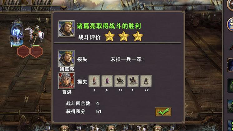 再往前有一名强盗首领率领部众盘踞,发起战斗时需特别关注刘备的血量,因对方强力单位伤害较高。击败首领后搜刮其身后全部资源,其中包含一个神秘宝箱,开启后可获得500点移动增益,极为珍贵。随后原路返回,途中右侧设有帐篷可供恢复生命值。帐篷右侧可发现荀彧,击败后可通过关卡并有机会获得亢龙宝藏,其中可能开出稀有的亢龙套装。但若此前战斗中刘备不幸阵亡,则可放弃此次挑战,不影响整体进度。