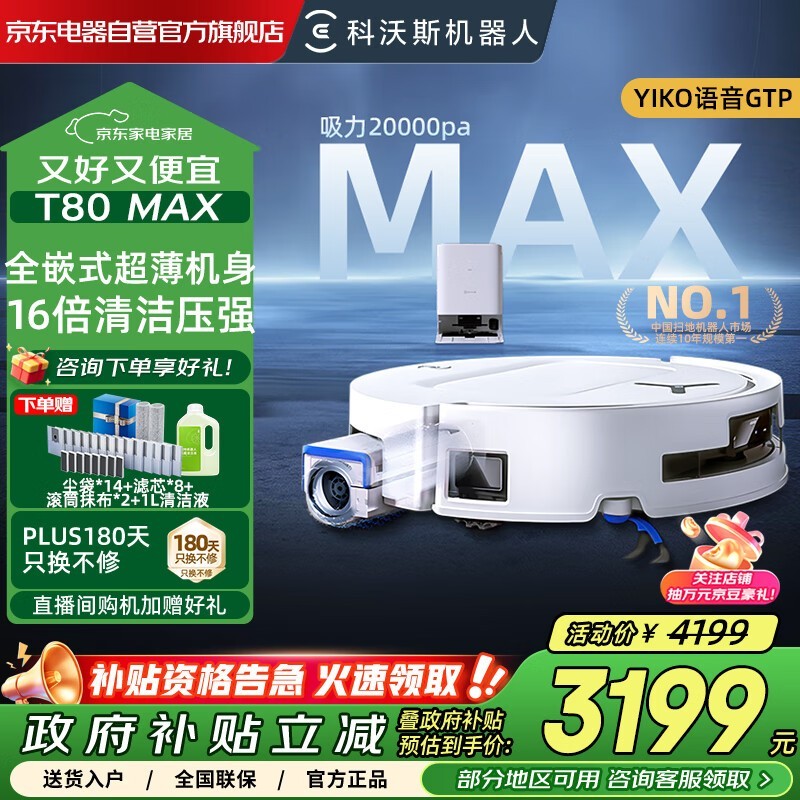 科沃斯T80 MAX扫地机京东直降千元