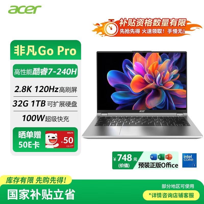 宏碁非凡Go Pro轻薄本钜惠