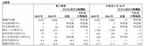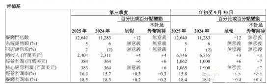 此外,百胜中国前三季度门店总数达17514家,净新增门店1119家,尚未达成净新增1600至1800家门店的目标。分品牌来看,肯德基门店前三季度总数达12640家,净新增992家门店,第三季度总收入达24亿美元,经营利润同比增长6%至3.84亿美元,创同期历史新高。