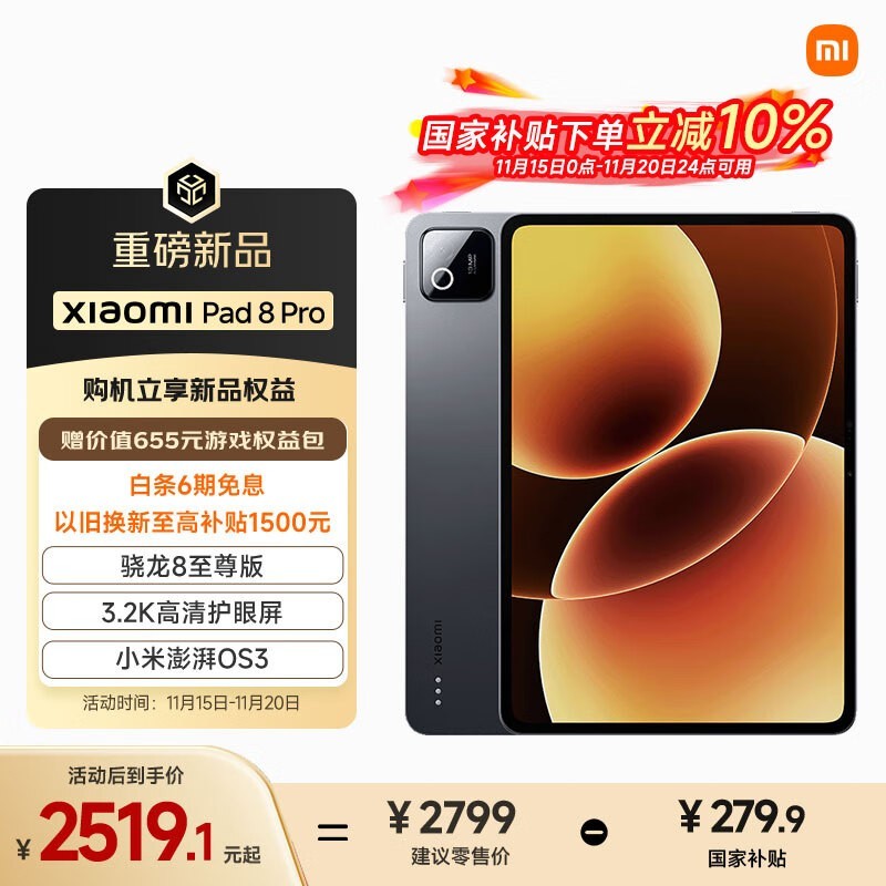 小米平板8 Pro到手2069元,速抢!