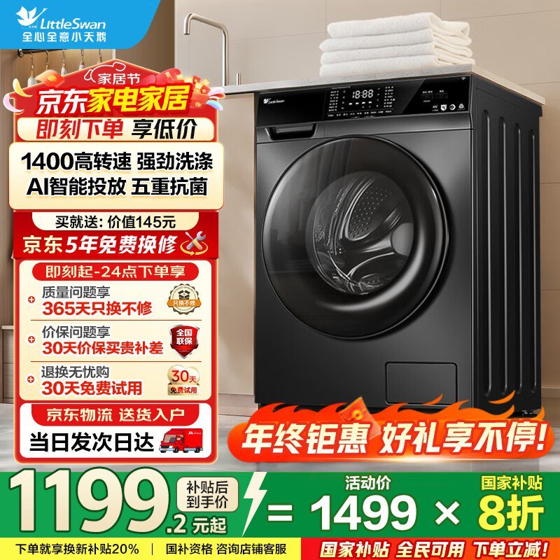 小天鹅浣彩滚筒洗衣机,到手仅1199元