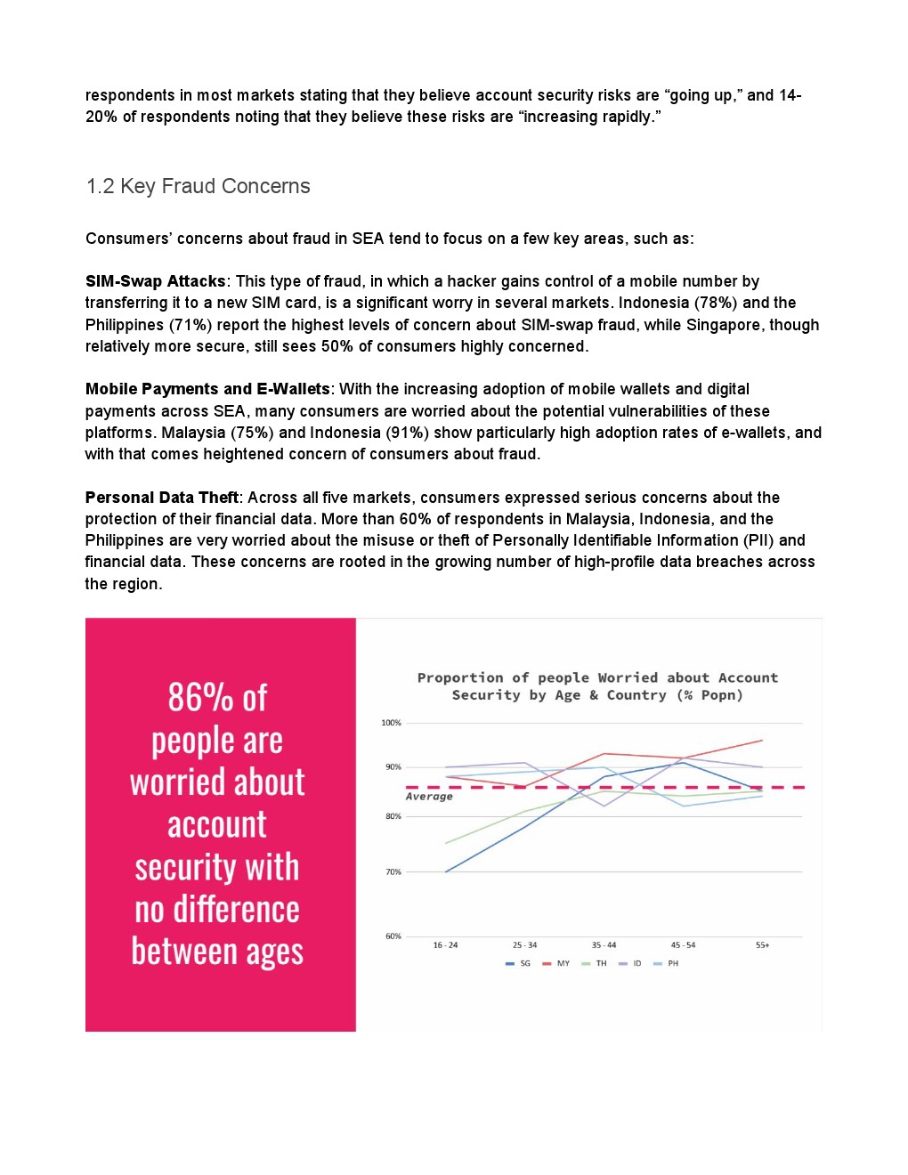 移动支付和电子钱包:随着该地区移动钱包和数字支付的日益普及,许多消费者担心这些平台的潜在漏洞。马来西亚(75%)和印度尼西亚(91%)的电子钱包采用率特别高,随之而来的是消费者对欺诈行为的高度关注。