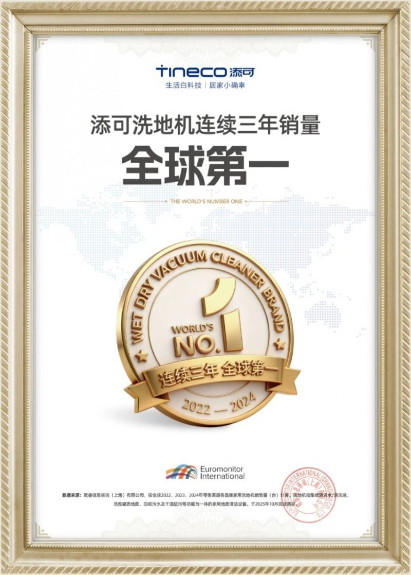 从开创一个全新的清洁品类,到定义行业的技术标准与发展方向,再到连续三年销量全球第一*,添可的发展历程本身,就为整个行业的演进提供了清晰的路径。展望未来,添可将继续以用户需求为核心,持续引领智能清洁行业发展,为全球更多家庭带来“居家小确幸”,让“中国智造”的魅力闪耀全球。