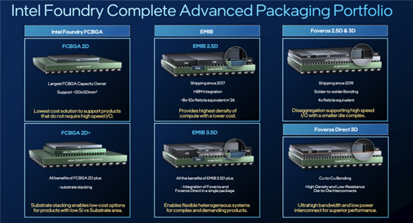 Intel CEO及高层过去曾多次强调,自家的Foveros和EMIB技术已吸引了多家客户的兴趣,并具备大规模量产的能力。